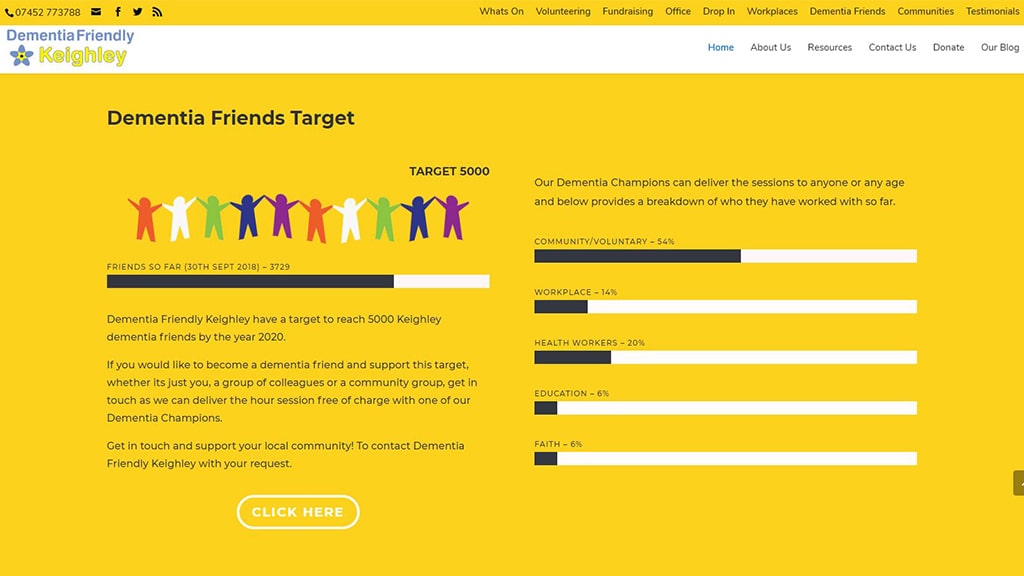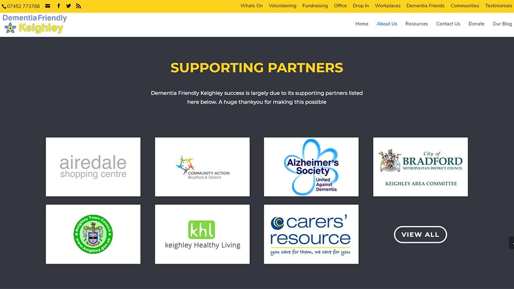 As demand for this invaluable service grew Dementia Friendly Keighley needed a website to demonstrate the high level of services and activities it could offer. The Trustees wanted a site that was user friendly and a invaluable resource of information for both people suffering with dementia along with people and organisations within the community wanting to offer their support.