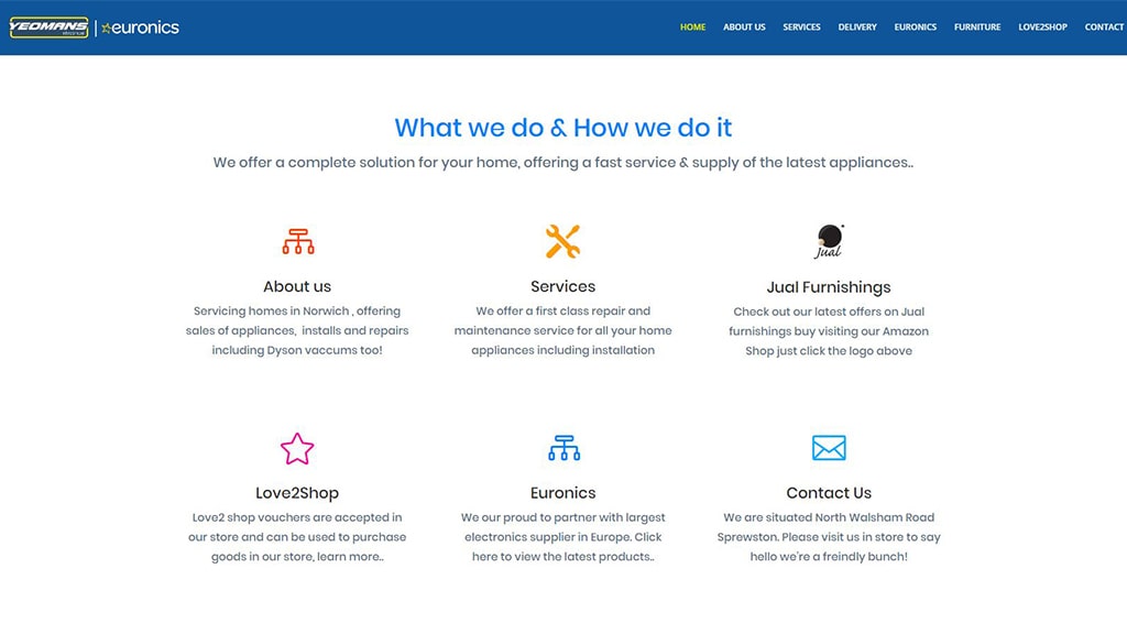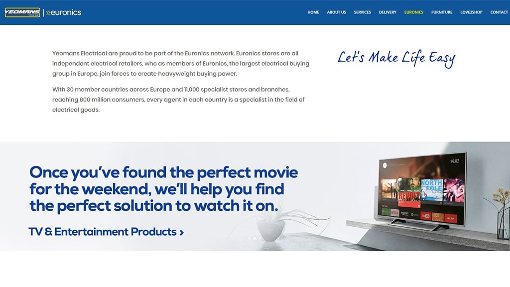 Yeomans Electrical ltd is an independent electrical retailer partnered with Euronics offering a large selection of home appliances at cost effective prices to service solutions to match.